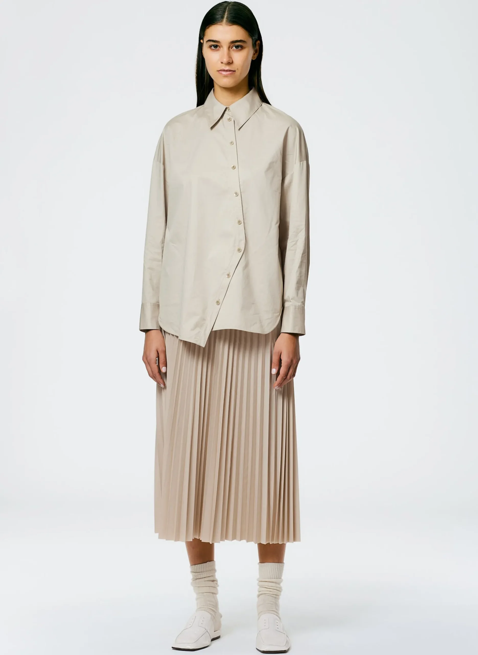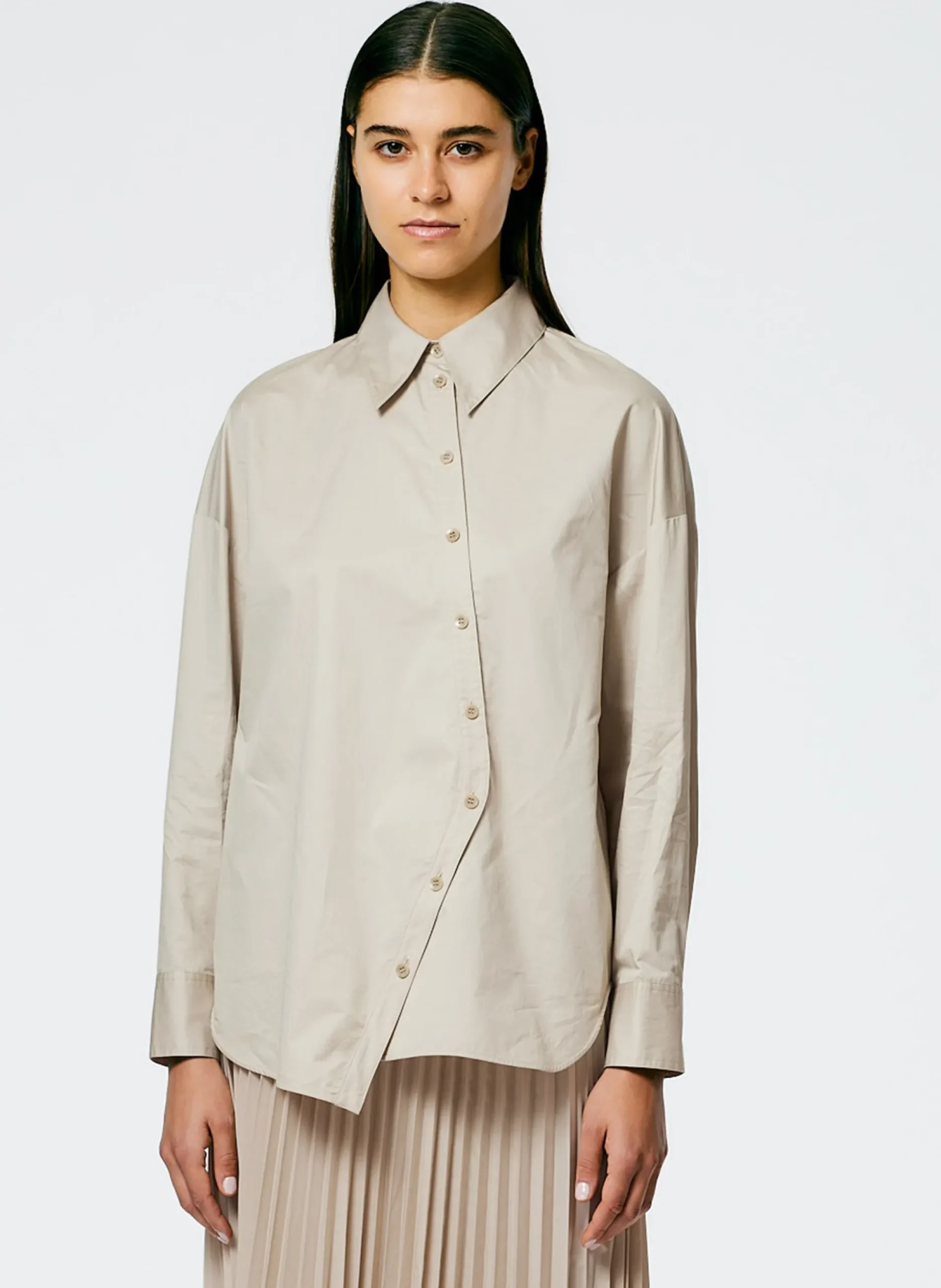 To all my cps out there, this shirt is for you. Crafted from 100% cotton with a sateen weave, the Eco Poplin Asymmetrical shirt pushes sartorial boundaries. Featuring an asymmetrical button pattern and a long collar to top it off. Coming in a Navy Fog and Ash, this shirt is creative in nature but pragmatic enough for endless outfit combinations. CPs rejoice for your answers of the perfect shirt have been answered, have fun with this unique piece.