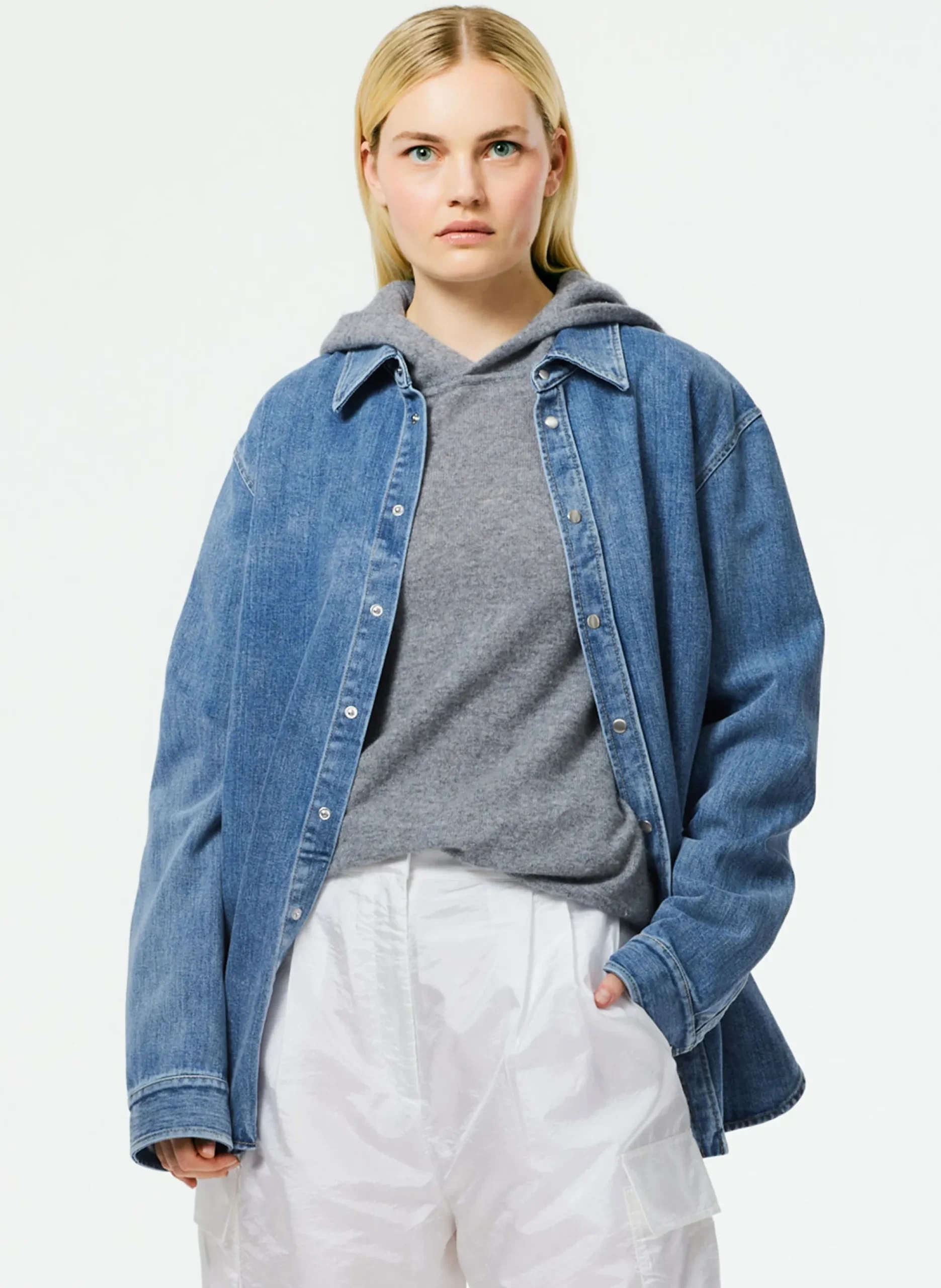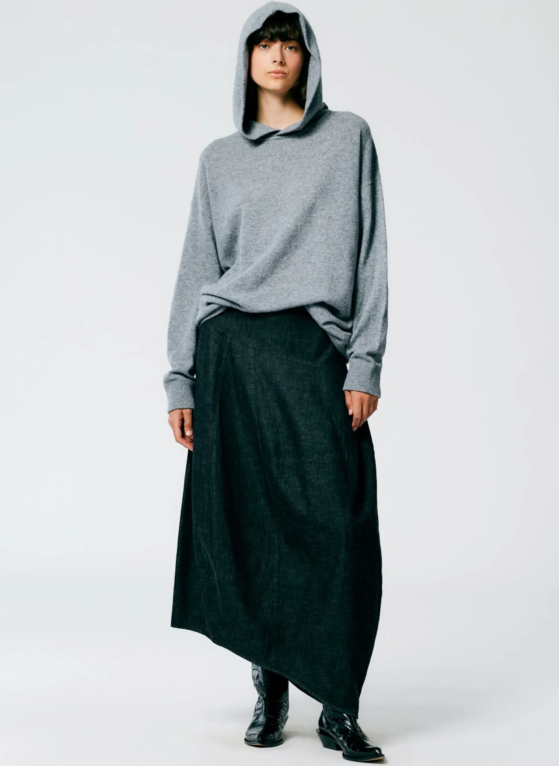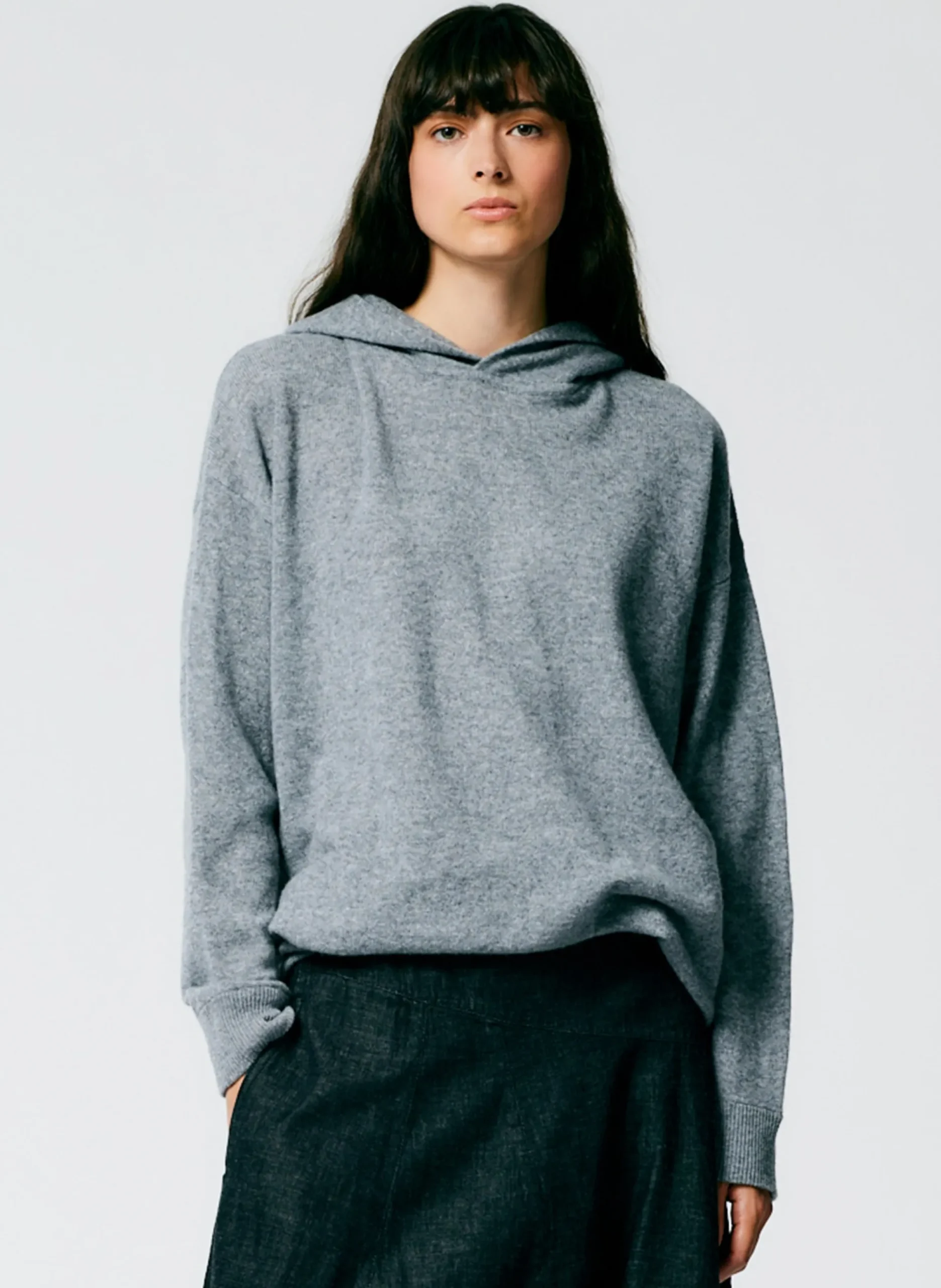 The Easy men’s hoodie is made from 100% lightweight cashmere that is meant to be worn 365 days a year. The feather weight cashmere is the ultimate 12 mo’er piece that elevates your hoodie rotation. Style back to the Light Weight Stone washed Asymmetrical Skirt, or back to novelty bottoms from the F23 main collection.