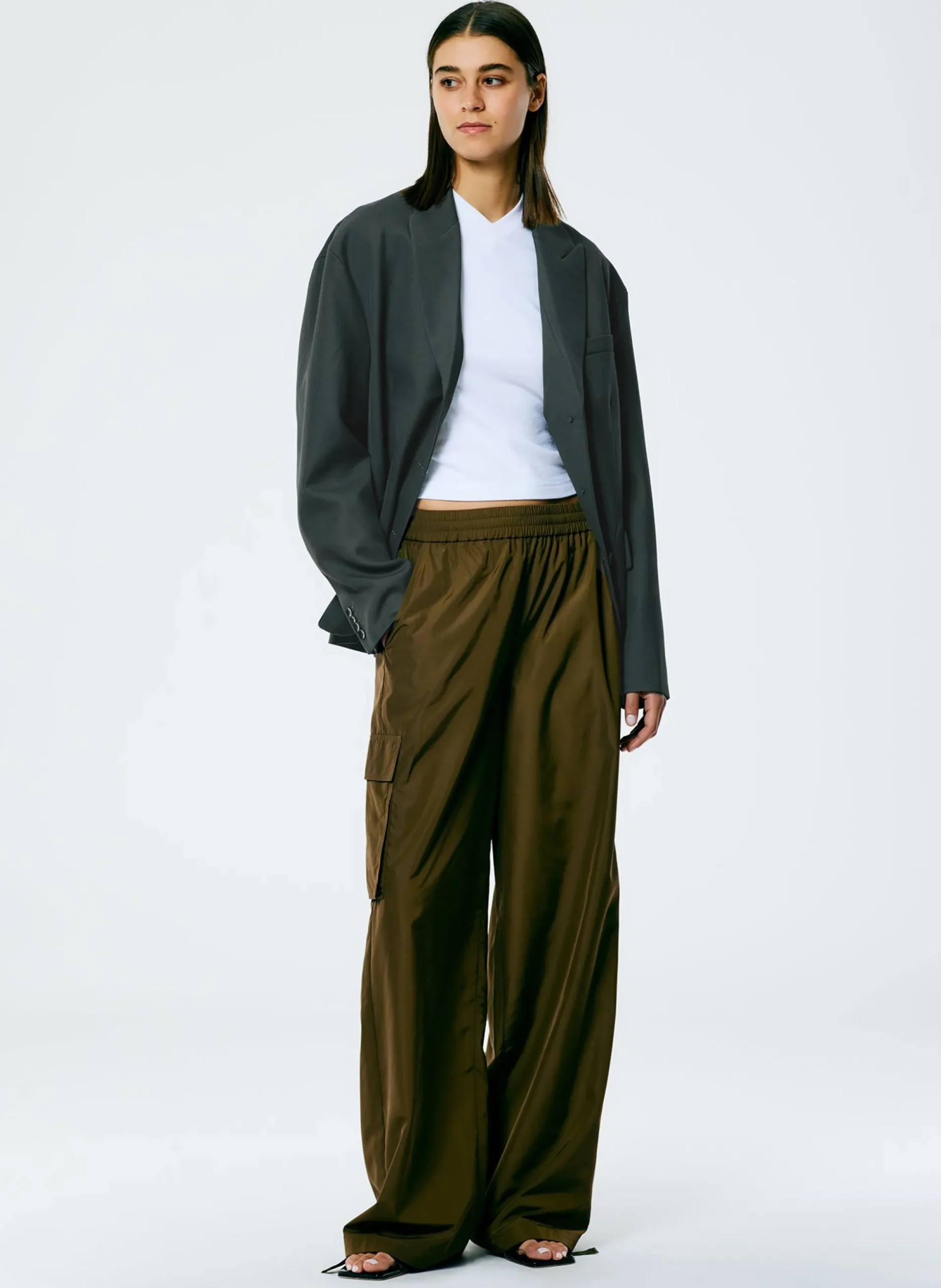 It’s in the name, Sporty. Introducing the Italian Sporty Nylon Wide Leg Pull On Pant. Crafted from the fan favorite Italian Sporty Nylon Fabric, a lightweight luxe-meets-tech fabrication. This pant is soon to become a wardrobe staple. A cousin to our Active Knit Wide Leg Pull on Pant in a lighter fabrication. For those indecisive about tailoring, we heard your pleas and devised the ultimate style hack: a drawstring at the hem that allows you to adjust pant length and width on the fly without the commitment of permanent alterations. It’s also worth mentioning that the waistband is adjustable because we would never sacrifice style for the sake of functionality. Consider your prayers answered.