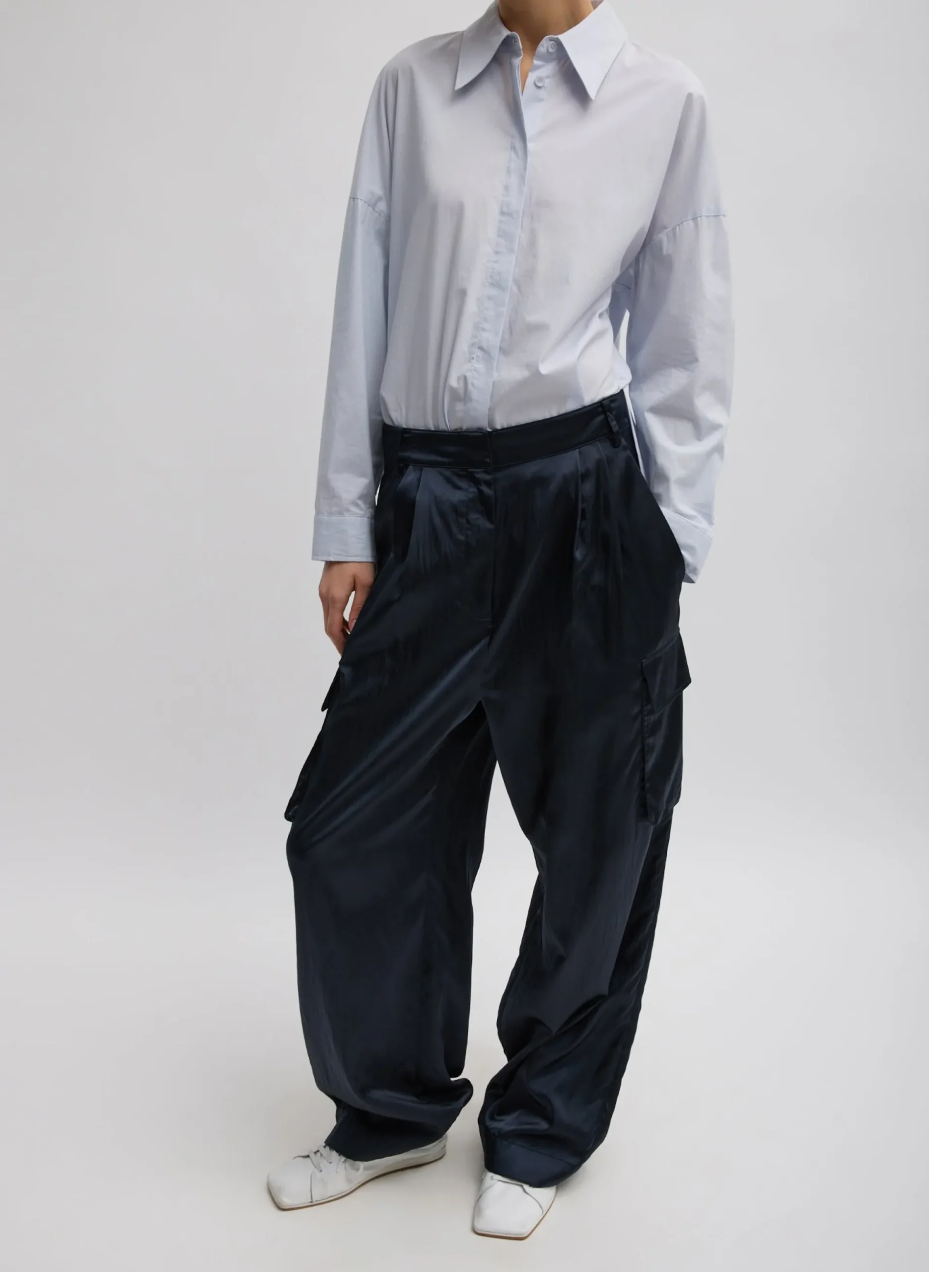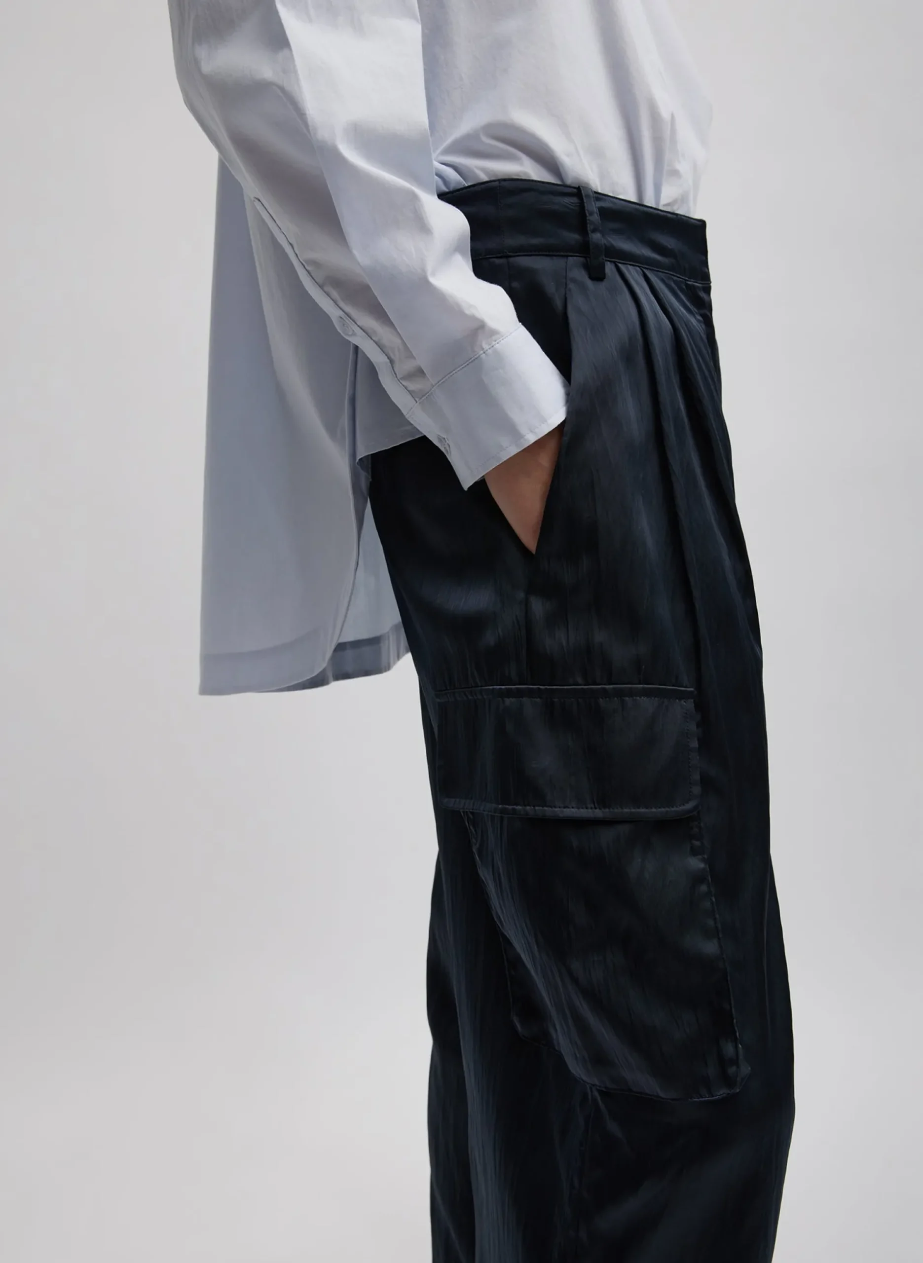 This assortment serves as your WOFs (Without Fails) and are designed to create space in your wardrobe for creativity and experimentation. No matter how extreme your closet may become, these pieces serve as the grounding element that ties everything together. As part of the Spring 2023 show, the Shiny Nylon Pleated Stella Cargo Pant quickly became an outfit staple for the creative pragmatist. The familiar shape of the ever faithful Stella Cargo, this shiny nylon version has relaxed cargo pockets but maintains the same level of elevated functionality. Made in a nylon satin with a water resistant finish, these pants possess the relaxed elegance needed to transition from the grocery store, to the office, to the evening with the right shoes.