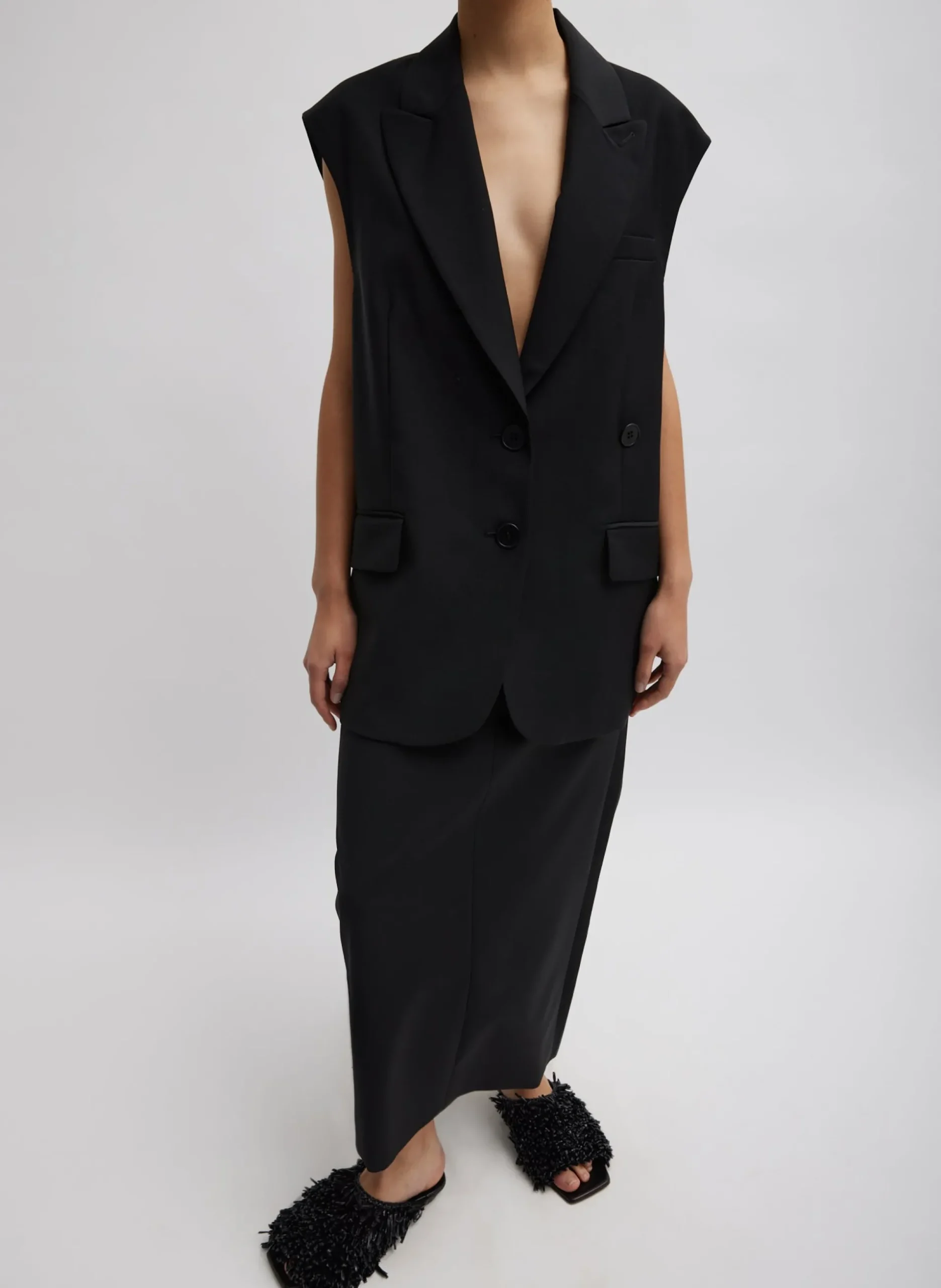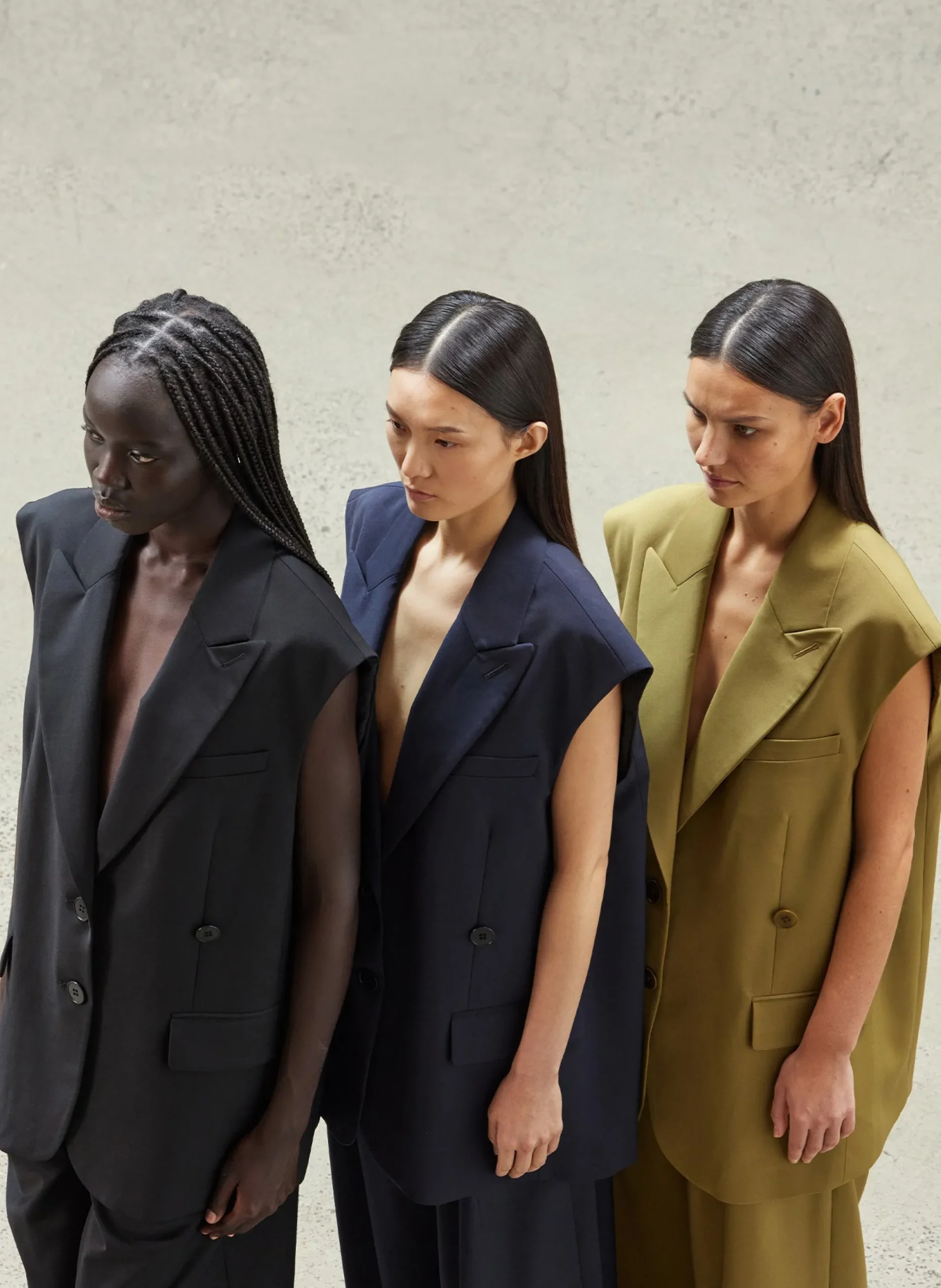 This assortment serves as your WOFs (Without Fails) and are designed to create space in your wardrobe for creativity and experimentation. No matter how extreme your closet may become, these pieces serve as the grounding element that ties everything together.The Tropical Wool Liam Vest is our newest variation on Tibi’s most versatile cut. Updated in our heritage virgin wool blend this fabrication is meant to be worn 12 months out of the year. Layer of on top of The Liam Blazer in matching colour or the Tropical Wool Pull on Cargo Short. Let this fan favourite silhouette be the value jacket your didn’t know you needed in your wardrobe.